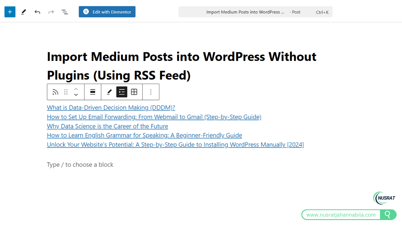 Bringing your Medium posts to WordPress is simple and effective. Using the RSS feed fromhttps://medium.com/@nusratjnabila1, you can manually import your posts. Alternatively, plugins like Feedzy RSS Feeds can automate the process and save time.